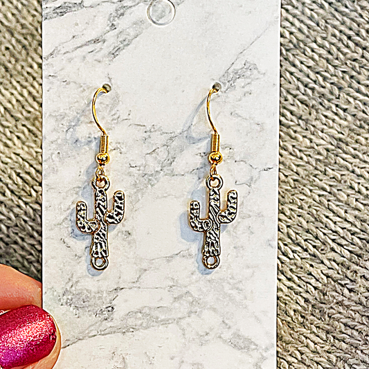 Gold Metal Cactus .925 Sterling Gold Earrings
