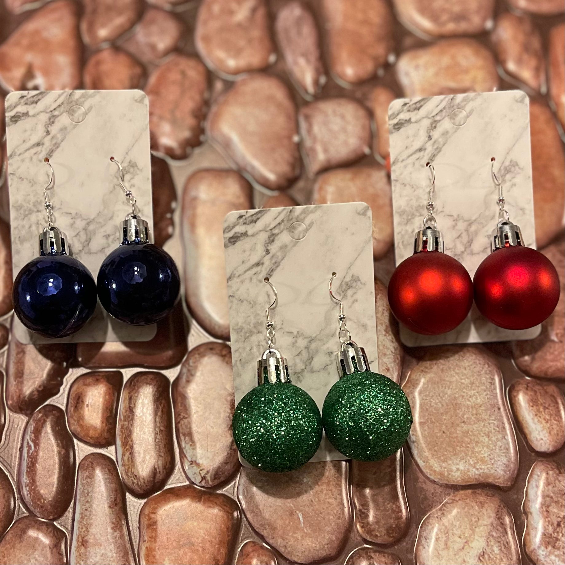 These beautiful Christmas bulb ornament earrings are the perfect accessory to show off your Christmas Spirit during the Holiday Season! There are 5 different color choices of Christmas bulb ornaments, offered in red, green, blue and orange. There are both solid and glitter options available.